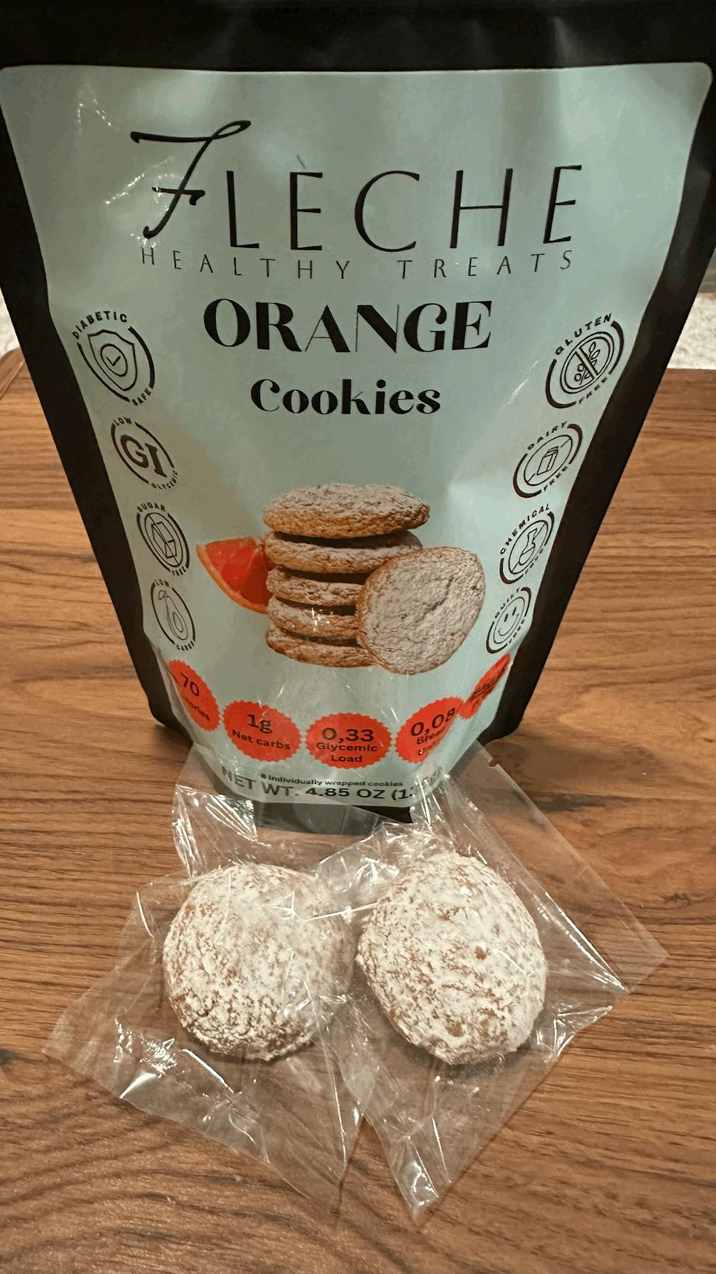 I discovered the Fleche orange cookies at my local health food store. Having been given diet restrictions by my physician, my biggest issue was cutting back on sweets, namely, processed sugar. The Fleche orange and lemon cookies pack so much flavor in one cookie, they are extremely satisfying! No sugar, almond flour and cage-free eggs plus other healthy ingredients, I feel like I'm spoiling myself! It's quite the bite!